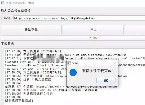 当前位置: 首页实操项目正文 一款可以下载公众号文章内视频的工具 用法很简单,你只需要把公众号文章粘贴到工具内,再点开始下载即可 我这边亲测是可以的。 需要注意的是,公众号文章的链接一定要正确,否则是下载不成功的。 会员全站资源免费获取,点击查看会员权益 普通用户可在下方单独购买课程! 隐藏内容此处内容需要权限查看普通9.8积分会员免费 购买本内容 会员免费查看 声明:本站所有文章,如无特殊说明或标注,均为本站原创发布。任何个人或组织,在未征得本站同意时,禁止复制、盗用、采集、发布本站内容到任何网站、书籍等各类媒体平台。如若本站内容侵犯了原著者的合法权益,可联系我们进行处理。 收藏 链接