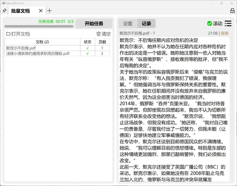 批量文档:PDF文档OCR的功能,经常有小伙伴求软件,其实这个Umi-OCR就有文档识别的功能,而且还支持批量。