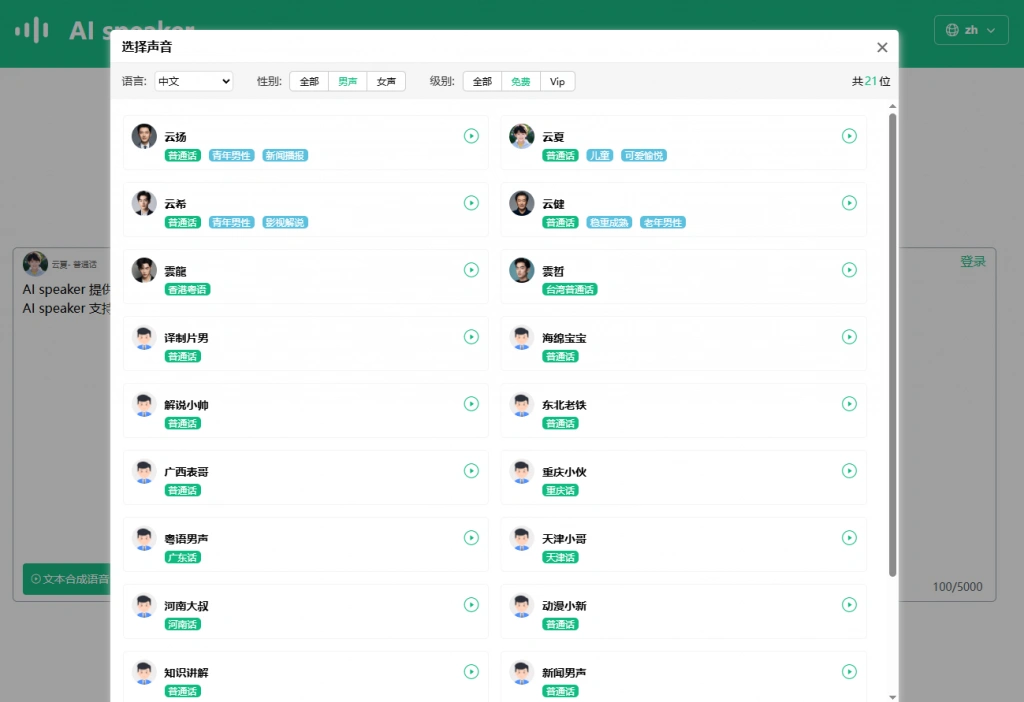 - 有免费使用的音色,也有付费的音色,但是免费也够用, 单次合成建议5000字内