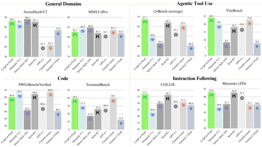 - 智能体能力:在τ2-Bench(智能体工具使用基准)中超越了参数更大的竞品;在VitaBench(复杂场景智能体基准)中以24.30的得分位列第一。