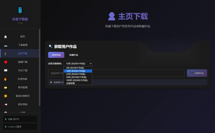 - 批量下载用户作品,一键抓取指定账号全部发布内容