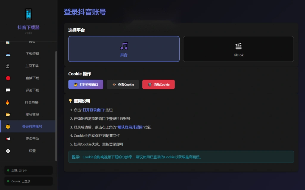 - 支持抖音与 TikTok,跨区域内容采集无压力